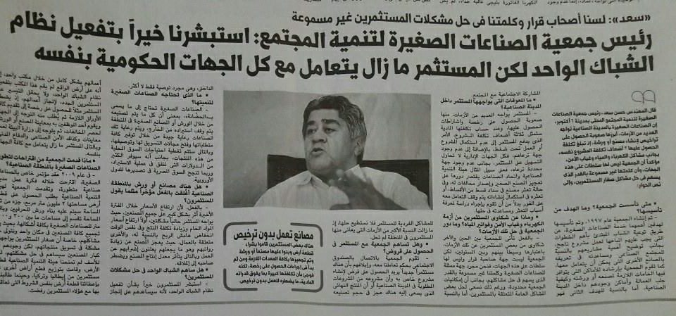 اعلان تتشرف جمعية الصناعات الصغيرة بانها بصدد حجز مساحة مليون متر مربع بالمنطقة الصناعية بمدينة اكتوبر الجديدة بغرض انشاء اول كمبوند للصناعات الصغيرة بالاضافة الى تأسيس […]